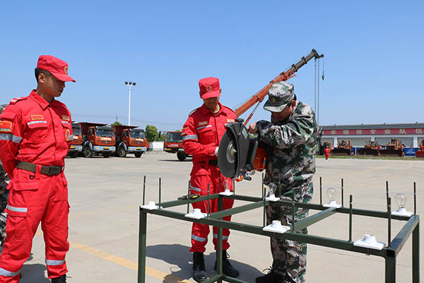 應(yīng)急救援專項培訓(xùn)堅持黨建引領(lǐng)、使命驅(qū)動、強能為要,突出“練技能、練作風(fēng)、練意志”,組織參觀了訓(xùn)練基地,觀摩了中國安能搶險隊員專業(yè)訓(xùn)練,在氛圍感召、對標(biāo)找差中催生動力、昂揚狀態(tài)。設(shè)置了以海姆立克法、滅火器使用方法、簡易擔(dān)架制作等為主的應(yīng)急救援基礎(chǔ)科目,以龍吸水操作、液壓切割機精準(zhǔn)操作、挖掘機推小球訓(xùn)練等為主的專業(yè)裝備訓(xùn)練科目以及錘煉學(xué)員精神作風(fēng)的單個軍人隊列訓(xùn)練科目。訓(xùn)練過程中,基地教練員認(rèn)真負(fù)責(zé),以深厚的理論功底和精細(xì)的專業(yè)技術(shù)水平傳授了學(xué)員大量應(yīng)急救援知識和實操經(jīng)驗,在錘煉了學(xué)員作風(fēng)的同時也進(jìn)一步強化了學(xué)員的應(yīng)急處置能力,得到了省人防參訓(xùn)學(xué)員的一致好評。
