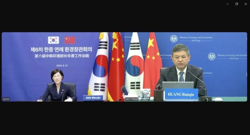 6月12日,中韓環(huán)境部長2024年度工作會晤以視頻方式舉行。生態(tài)環(huán)境部部長黃潤秋和韓國環(huán)境部部長韓和真出席會議。雙方就大氣污染防治、生物多樣性保護(hù)、塑料污染治理等議題進(jìn)行深入交流。