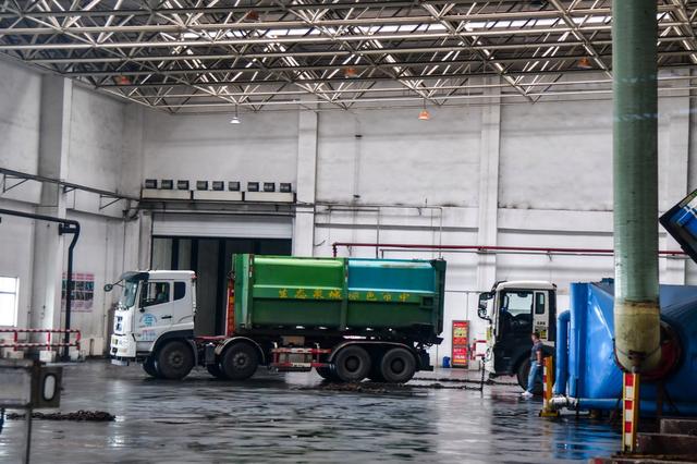 9月19日,在山東啟迪濟能環(huán)??萍加邢薰荆\輸車在負壓車間內(nèi)卸載生活垃圾。