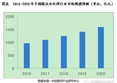 綜合多重因素預(yù)測,“十三五”期間膜法水處理行業(yè)產(chǎn)值五年復(fù)合增速大概落在10-15%間,若以13%進行計算,到2020年我國膜法水處理行業(yè)市場規(guī)模將達1600億元左右。