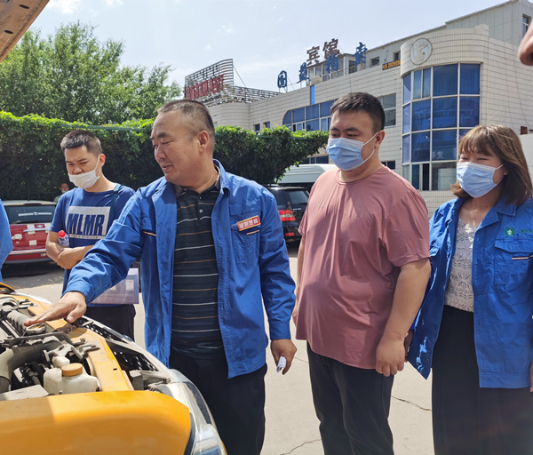 檢查現(xiàn)場,忠聯(lián)汽修廠郝總邊檢查邊為分局駕駛員進行車輛日常維護及保養(yǎng)的講解。郝總講到駕駛員必須堅持進行日常維護,車輛日常維護包括堅持“三檢”,保持“四清”,防止“四漏”,每次出車前必須做到對汽車外觀進行檢查、保持車容整潔;對汽車燃油、輪胎氣壓等進行檢視補給;對汽車制動、轉(zhuǎn)向、燈光等安全部位和位置以及發(fā)動機運轉(zhuǎn)狀態(tài)進行檢視。駕駛員在郝總的講解下模擬了車輛日常維護。