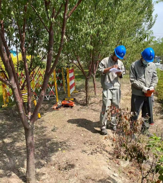 分局了解相關情況后,立即組織配電檢修試驗班人員攜帶儀器前往現(xiàn)場。經(jīng)現(xiàn)場勘察了解,該校區(qū)擴建區(qū)域涉及原居民用房及垃圾場所在地,位于小區(qū)、商業(yè)樓和沙河一小北區(qū)中間地帶,用戶較多,地下線路比較復雜,且部分電纜位于擴建項目未拆除墻體內側,為保障電纜在施工過程中不受外力破壞、確保周圍用戶用電不被影響,工作人員在征得用戶同意后,對內外側整段電纜進行了探測。工作人員熟練調試儀器參數(shù),沿著電纜起點逐步探測,耐心排除干擾信號,確保精準判斷電纜走向。頭頂夏日灼熱陽光,在兩個小時的緊張工作后,終于確定了該區(qū)域所有電纜路徑及埋深,此時已過了中午。該小學擴建項目負責人向分局工作人表達了感謝:“這么大熱天,真是辛苦你們了,要不是有你們這么專業(yè)的儀器,我們施工風險肯定會增加,工期也可能會有延誤,供電局的技術和服務真是沒的說。”