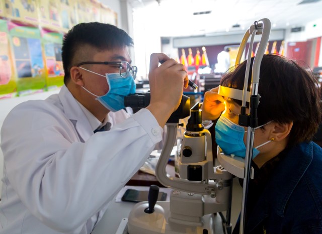 “這些年,庫爾勒市春季沙塵氣候比較頻繁,前來眼科醫(yī)院就診的患者以近視、散光、斜弱視、淚道病、干眼癥、翼狀胬肉癥狀較多” ,負責驗光的防盲健教組長辛葉醫(yī)生認為,“自然環(huán)境影響是一個方面,更多的在于用眼不衛(wèi)生”,他建議要關(guān)注用眼過度的問題,隨著電視、電腦、移動設備越來越普及,近距離用眼成為職場人最主要的生活、工作狀態(tài),大量的信息通過視覺傳遞加重了眼睛的負擔,這是造成用眼過度的首要因素,也是大范圍開展眼健康普查的重要原因。