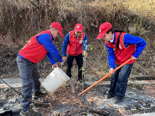 新栽的樹苗錯落有致、迎風挺立,在春天的路邊小坡上形成了一道充滿生機的嫩綠色風景線。共產黨員服務隊隊員、青年志愿者們用實際行動美化家園,助力環(huán)境保護,踐行了“綠水青山就是金山銀山”戰(zhàn)略謀劃,努力為“碳達峰、碳中和”目標如期實現貢獻力量。