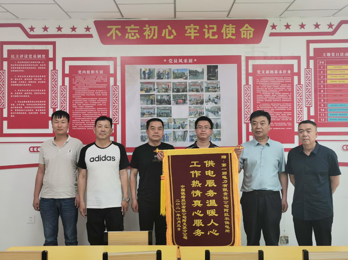 中國(guó)鐵塔阿克蘇分公司負(fù)責(zé)人蔣羽將一面寫(xiě)著“供電服務(wù)溫暖人心·工作熱情真心服務(wù)”的錦旗送到一師電力阿拉爾供電所負(fù)責(zé)人手中,對(duì)他們優(yōu)質(zhì)、高效的供電服務(wù)贊不絕口。