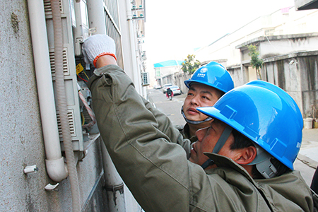 中國(guó)電力網(wǎng)訊 1月11日,江蘇連云港東海縣供電公司營(yíng)銷管理人員吳東華、李金在牛山鎮(zhèn)王東村檢查用戶表計(jì)用電情況。