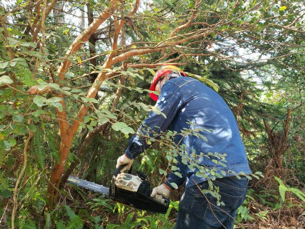 由于生長于輸電線路附近的樹木,常常會給線路的穩(wěn)定運行帶來麻煩,還有一些生長在變壓器附近的藤蔓,它們的過快生長會給設備和線路帶來許多不穩(wěn)定因素。因此,該公司定期要求各供電所組織班組成員進行線路砍青掃障工作,消除樹線隱患,保證輸電線路的穩(wěn)定運行。
