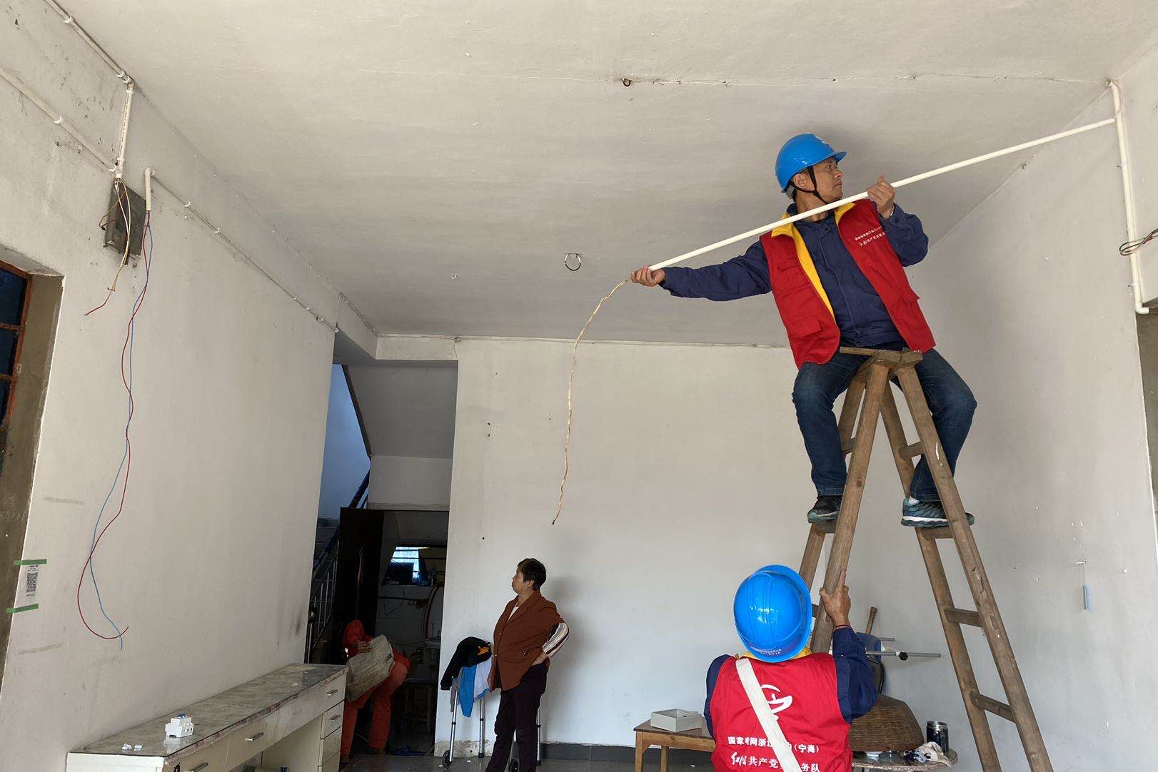 中國電力網(wǎng)訊 “把這個插座往下移,這樣方便我家老倌用電,還有樓上燈壞了,也幫忙換下......”10月23日,看到國網(wǎng)寧??h供電公司電建支部黨員服務(wù)隊來到家里,殘疾老人王圣澤的老伴顯得格外激動。因為家里拉成“蜘蛛網(wǎng)”一樣的電線這下能得到徹底整理了,而且還可以根據(jù)殘疾人的需求改造插座和開關(guān)的位置。