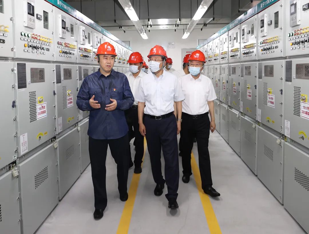 盛夏時(shí)節(jié),驕陽似火。辛保安首先來到110千伏同寧變電站,實(shí)地查看了設(shè)備運(yùn)行情況。該站是國網(wǎng)北京電力迎峰度夏重點(diǎn)工程,于4月份投運(yùn),對滿足客戶用電需求、保障電力可靠供應(yīng)發(fā)揮了積極作用。辛保安聽取了北京公司電力保供、重點(diǎn)工程建設(shè)情況的匯報(bào)。他指出,要堅(jiān)決扛牢電力保供首要責(zé)任,堅(jiān)持政企協(xié)同聯(lián)動、源網(wǎng)荷儲發(fā)力、各方齊心合力,科學(xué)安排電網(wǎng)運(yùn)行方式,強(qiáng)化作業(yè)現(xiàn)場安全管控,抓實(shí)抓細(xì)疫情防控工作,著力提高應(yīng)急響應(yīng)能力,確保圓滿完成迎峰度夏各項(xiàng)任務(wù)。要堅(jiān)持高起點(diǎn)、高標(biāo)準(zhǔn)規(guī)劃建設(shè)一流城市電網(wǎng),充分發(fā)揮電網(wǎng)基礎(chǔ)支撐、投資拉動和服務(wù)保障作用,全力推進(jìn)重大工程建設(shè),加大開工力度、加快建設(shè)進(jìn)度,有效釋放產(chǎn)業(yè)鏈上下游市場需求,助力穩(wěn)經(jīng)濟(jì)穩(wěn)增長。