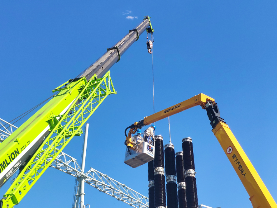 國網(wǎng)北京電力員工在通州北500千伏變電站安裝串聯(lián)電抗器。