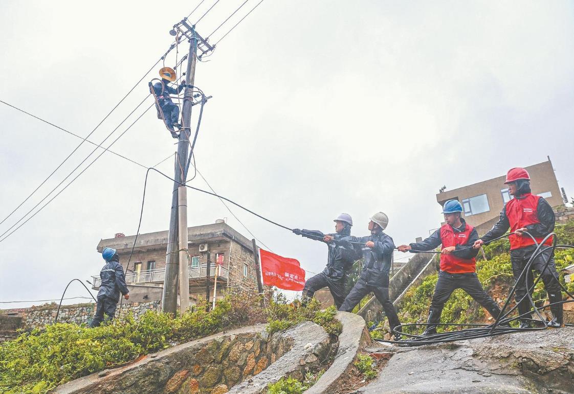 上杭縣供電公司員工加緊搶修,及時(shí)恢復(fù)該村120余戶(hù)村民的正常用電。陳金來(lái) 攝