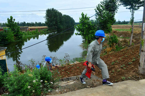 “陳書(shū)記,昨天下雨無(wú)法施工,我們現(xiàn)在在陳廟一級(jí)站,準(zhǔn)備開(kāi)展專(zhuān)變表箱表計(jì)和互感器安裝工作,請(qǐng)?jiān)S可斷開(kāi)專(zhuān)變跌落保險(xiǎn)。”6月10日上午,國(guó)網(wǎng)湖北老河口市供電公司薛集供電所營(yíng)銷(xiāo)班長(zhǎng)李永久和同事站在薛集鎮(zhèn)陳廟村一級(jí)提灌泵站旁,撥通了陳廟村書(shū)記陳豐功的電話。