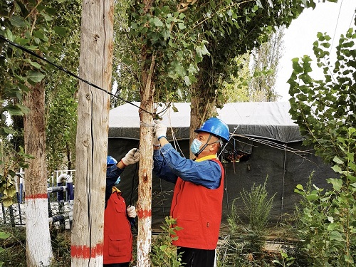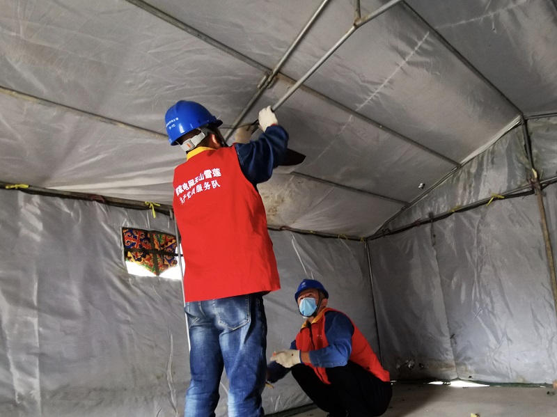 還沒休息幾分鐘又接到伊寧縣奎太買里村委會電話,“夏師傅,村委會要在村口建一個(gè)疫情檢查點(diǎn),需要接電照明,你們趕緊來處理一下。”黨員服務(wù)隊(duì)隊(duì)員夏文亮與他的搭檔做好消毒工作后,帶上安全工器具立即前往村委會防疫點(diǎn),經(jīng)過半個(gè)多小時(shí)的工作,村委會防疫點(diǎn)帳篷內(nèi)照明燈亮起來了。