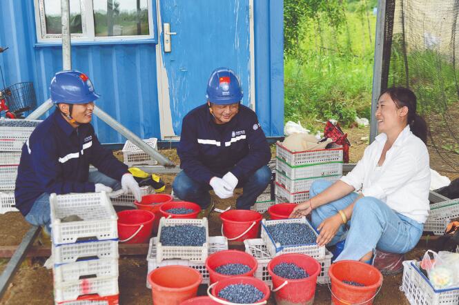 7月13日,在黑金河林場中藥材生產(chǎn)示范基地,種植戶孫靜和村民正忙著采摘越橘。“越橘從培育到種植再到儲(chǔ)存,都離不開電。”孫靜說。