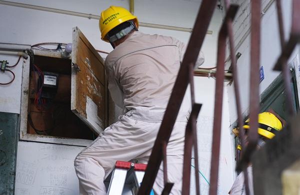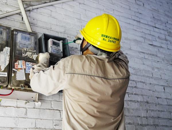 8月6日,網(wǎng)格班員工秦甫濤和同事頭戴安全帽,手持工具箱,肩扛電表箱,快步走進(jìn)永川郵電小區(qū)。
