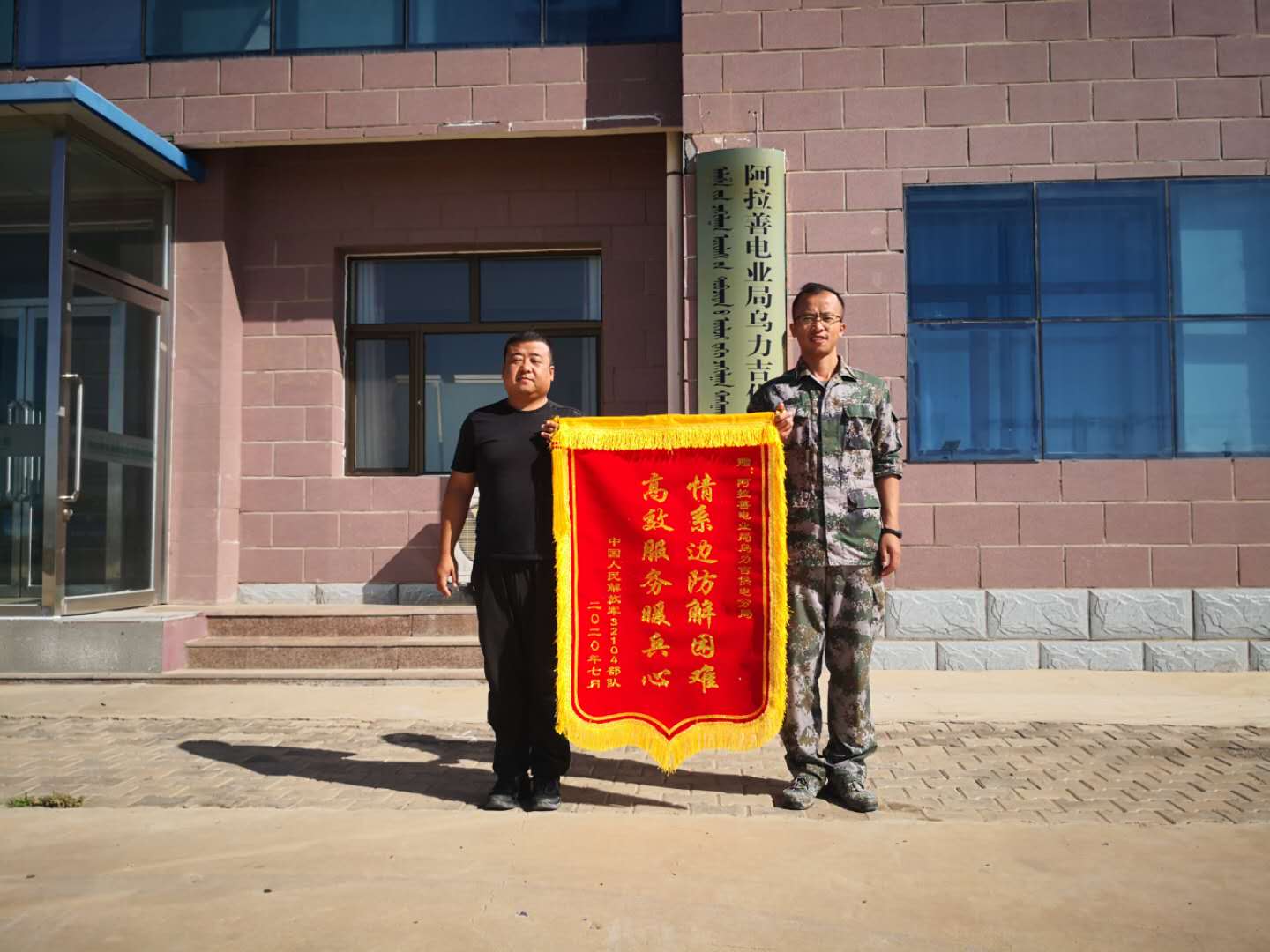 中國(guó)電力網(wǎng)訊 9月1日,阿拉善電業(yè)局烏力吉供電分局迎來(lái)了幾位特殊的客人,他們送來(lái)一面錦旗,錦旗上“情系邊防解困難 高效服務(wù)暖兵心”十四個(gè)大字熠熠生輝。駐扎在阿拉善盟烏力吉地區(qū)的邊防部隊(duì),用送錦旗方式對(duì)該分局為邊防事業(yè)所做的電力服務(wù)表示感謝。