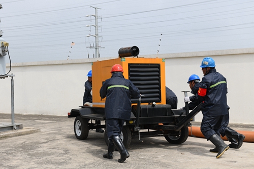 針對今年東??h域雨水增多、氣候變化頻繁,本次防汛演練以東??h域突降暴雨為背景,110千伏濱河變模擬暴雨后排水系統(tǒng)排水不及,雨水經(jīng)過電纜溝倒灌進變電站,綜合檢驗多部門協(xié)同合作,出現(xiàn)汛情時運維人員的防汛對應能力。