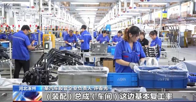 某汽車膠管企業(yè)負責(zé)人 許春光:膠管擠出線11條復(fù)工了4條,裝配總成車間這邊基本復(fù)工率大概在70%—80%之間,我估計裝配總成車間還有不到一個星期差不多就恢復(fù)正常了。