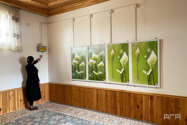 村民卡力比努爾·阿不都許庫正在調(diào)節(jié)電暖設備溫度(央廣網(wǎng)發(fā)楊林攝)