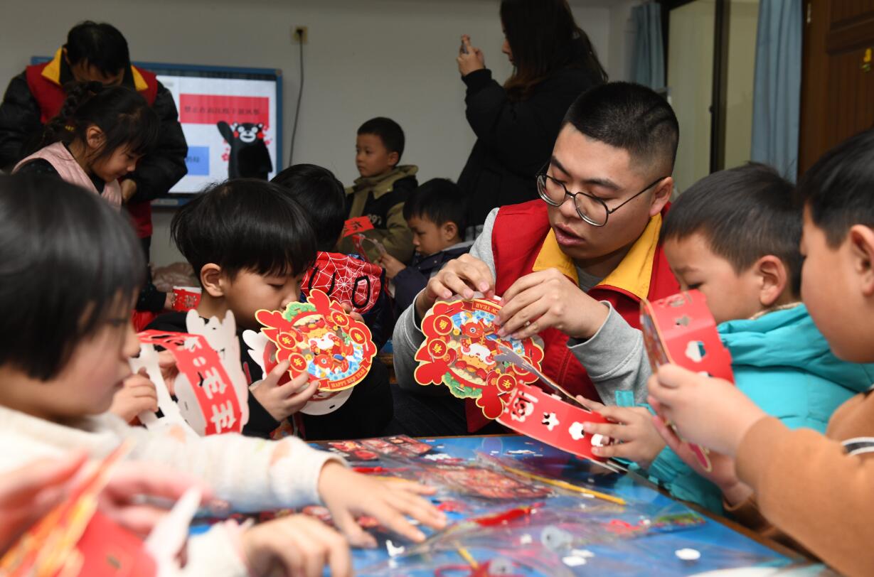隨后,志愿者與孩子們還分組一起動(dòng)手制作了“龍年小燈籠”,在志愿者的指導(dǎo)一下,整理素材、拼接卡紙、綁流蘇……孩子們一步步依次組裝。制作過(guò)程中,孩子們異常興奮,有說(shuō)有笑,不一會(huì)兒他們就制作完成一盞盞漂亮的小燈籠??粗约旱膭趧?dòng)成果,孩子們的笑臉更加燦爛了。