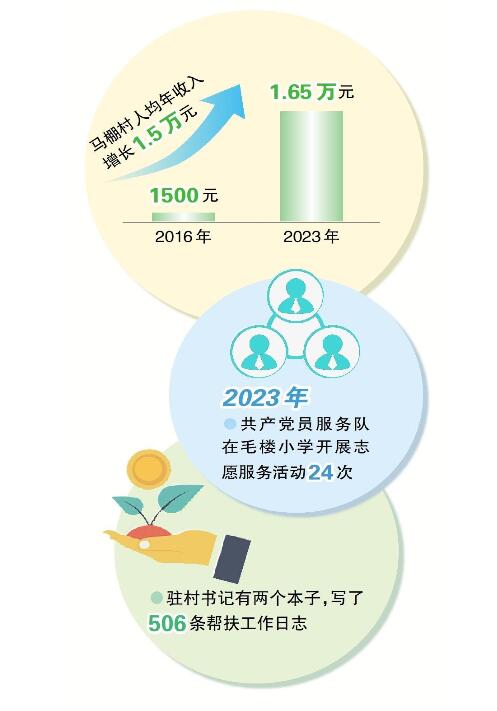 2023年,馬棚村人均年收入達(dá)到1.65萬(wàn)元,比2016年增加1.5萬(wàn)元。