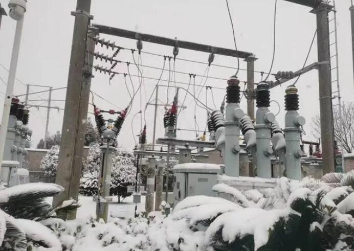 風(fēng)雪中的貴州電網(wǎng)貴安35千伏湖壩變