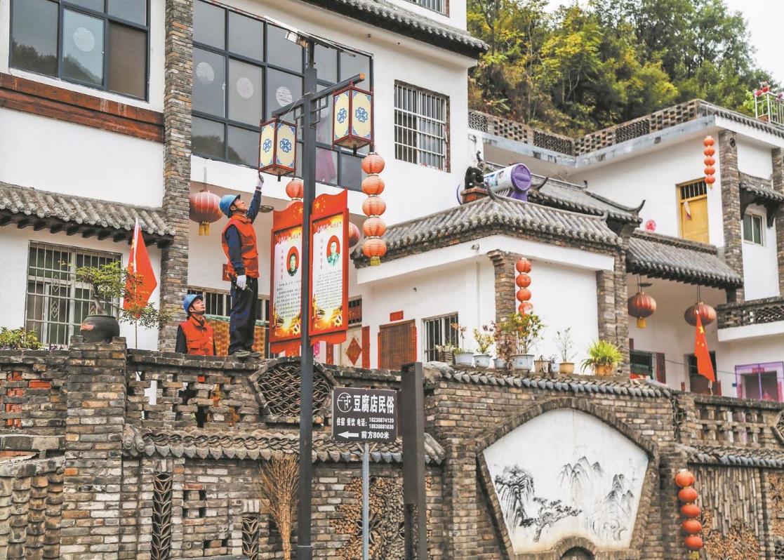 供電員工在三合村檢修用電線路,保障村民安全用電。石亞博 攝
