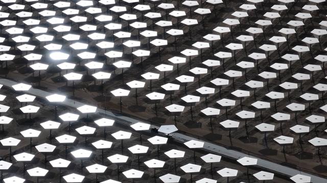 國內在建單機規(guī)模最大的塔式光熱項目——甘肅阿克塞匯東新能源光熱+光伏試點項目11960面定日鏡全部安裝完成。阿克塞項目位于甘肅阿克塞哈薩克族自治縣千萬千瓦級可再生能源多能互補基地,總裝機容量750MW,包括110MW光熱發(fā)電和640MW光伏發(fā)電,是國內在建單機規(guī)模最大的塔式光熱項目,是國內首批“光熱+光伏”試點項目。(新華社 記者:楊志剛)