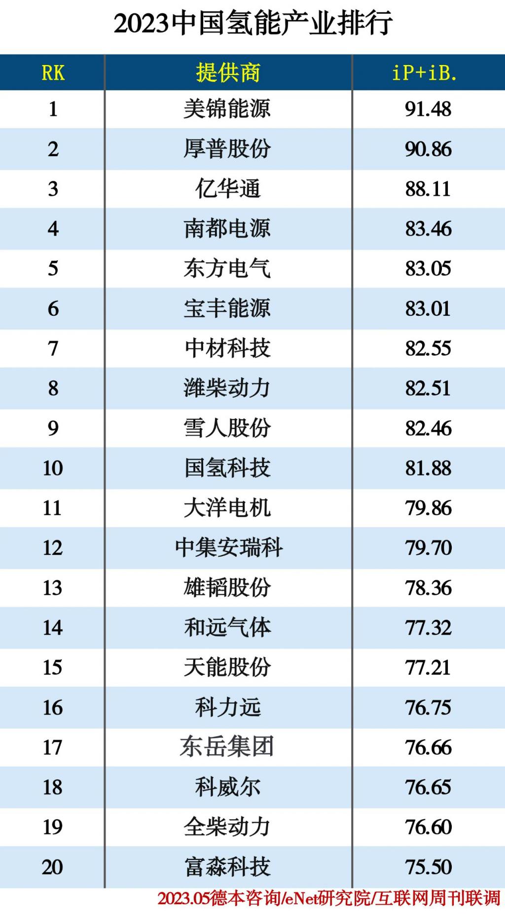 2023中國氫能產(chǎn)業(yè)排行