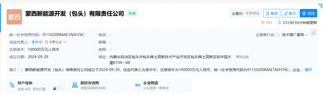 近日,蒙西新能源開發(fā)(包頭)有限責(zé)任公司成立,法定代表人為李中寧,注冊(cè)資本10億元,經(jīng)營范圍包含:站用加氫及儲(chǔ)氫設(shè)施銷售;高性能有色金屬及合金材料銷售;有色金屬合金制造等。