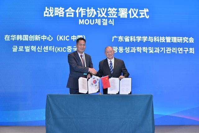 本次論壇由廣東省科學(xué)學(xué)與科技管理研究會(GSTMR)、在華韓國創(chuàng)新中心(KIC中國)共同主辦。論壇上,廣東省科學(xué)學(xué)與科技管理研究會與在華韓國創(chuàng)新中心(KIC中國)共同簽署戰(zhàn)略合作協(xié)議,翻開合作新篇章。雙方將按照此次論壇達(dá)成的共識,全力協(xié)調(diào)各方力量,每年定期舉辦相關(guān)方面的高層次研討活動,進一步推動相關(guān)科技成果在大灣區(qū)加速落地轉(zhuǎn)化。