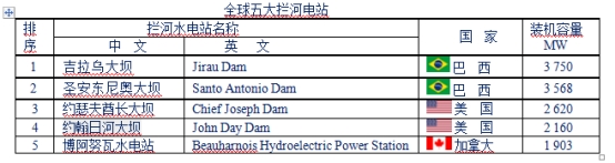 中國(guó)湖北省的三峽水電站仍然是世界上最大的水電站,總裝機(jī)容量為22.50 GW;位于巴西和巴拉圭的伊泰普水電站是世界第二大水電站,裝機(jī)容量為14.00 GW。不過(guò),伊泰普水電站所處的巴拉那河水量豐沛且季節(jié)分布相對(duì)均衡,幾乎可以全年滿負(fù)荷發(fā)電;而三峽水電站則每年都會(huì)經(jīng)歷約6個(gè)月的枯水期,從而限制了其發(fā)電量。