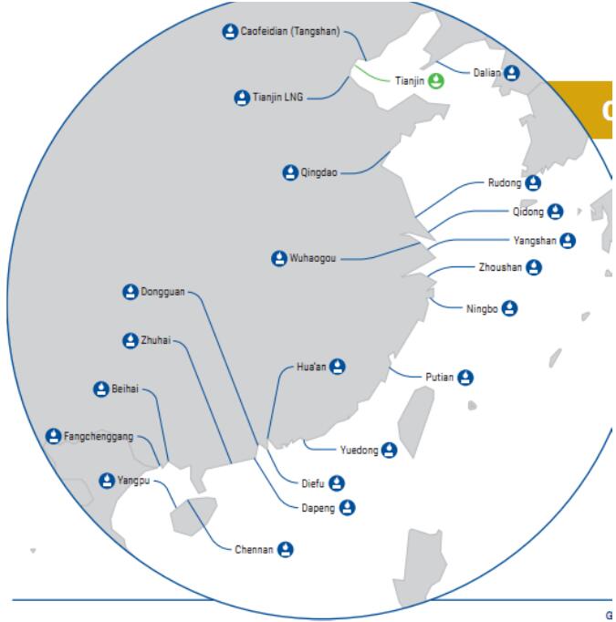 曹妃甸、寧波、莆田、啟東、青島、如東等現(xiàn)有碼頭正在進(jìn)行擴(kuò)建工程。預(yù)計(jì)到2021年,這些擴(kuò)建將增加超過(guò)15 MTPA氣化能力。2018年LNG儲(chǔ)罐罐容約53億立方米。