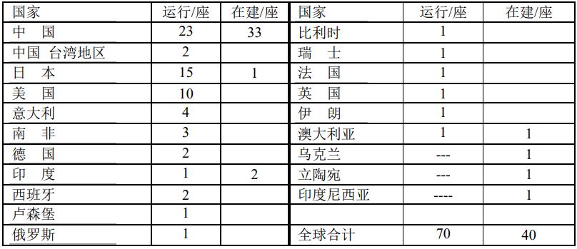 2021年世界各國抽水蓄能電站裝機容量大于1000MW的數(shù)量
