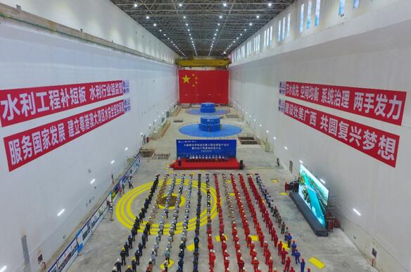 大藤峽水利樞紐工程是國務(wù)院確定的172項節(jié)水供水重大水利工程的標(biāo)志性工程,集防洪、航運、發(fā)電、水資源配置、灌溉等綜合效益于一體,是珠江流域關(guān)鍵控制性水利樞紐,被喻為珠江上的“三峽工程”。電站總裝機容量160萬千瓦,共安裝8臺單機容量20萬千瓦的水輪發(fā)電機組,左岸廠房3臺,右岸廠房5臺,為國內(nèi)最大的軸流轉(zhuǎn)漿式水輪發(fā)電機組。