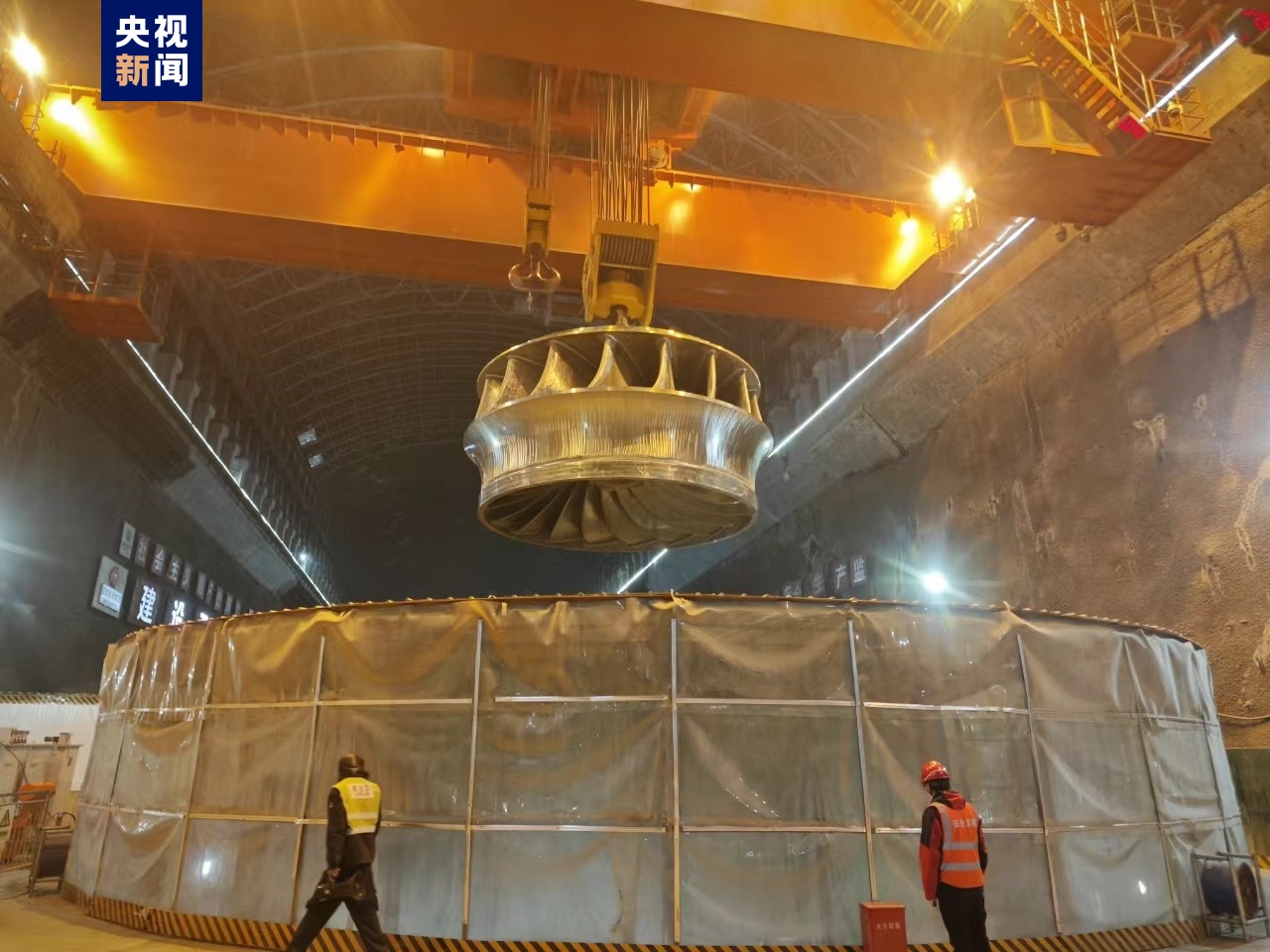 作為整個機組的核心,轉(zhuǎn)輪將水能轉(zhuǎn)換為軸的旋轉(zhuǎn)機械能,并通過水輪機主軸傳遞給發(fā)電機主軸及轉(zhuǎn)子,決定著水輪機的過流能力、水力效率及機組運行的穩(wěn)定。此次轉(zhuǎn)輪吊裝各環(huán)節(jié)無縫銜接,吊裝精準(zhǔn)安全就位。(毛保武 馬志原)