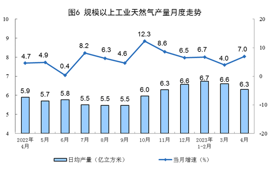 天然氣生產(chǎn)增速加快,進(jìn)口保持較快增長。4月份,生產(chǎn)天然氣189億立方米,同比增長7.0%,增速比3月份加快3.0個(gè)百分點(diǎn),日均產(chǎn)量6.3億立方米。進(jìn)口天然氣898萬噸,同比增長11.0%,增速比3月份放緩0.6個(gè)百分點(diǎn)。