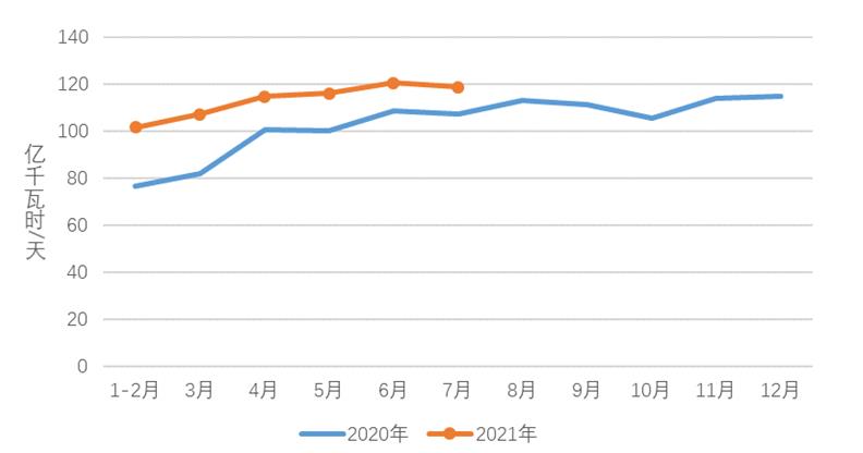 2021年1-7月電力消費(fèi)情況