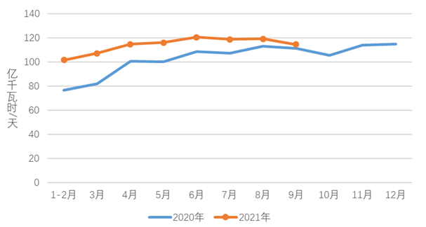 圖3 2020、2021年分月制造業(yè)日均用電量