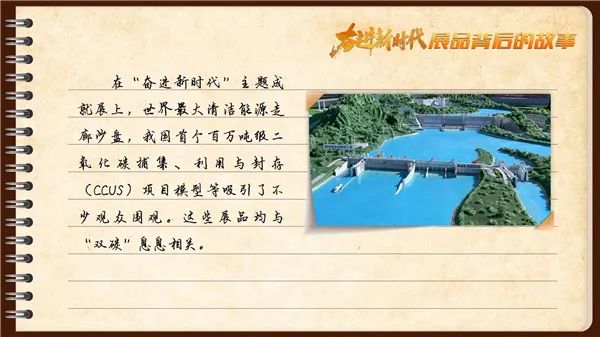 不只是世界最大清潔能源走廊沙盤,位于“奮進新時代”主題成就展中央綜合展區(qū)全面深化改革開放單元的我國首個百萬噸級二氧化碳捕集、利用與封存(CCUS)項目模型等展品,同樣吸引了不少人圍觀。這些展品均與“雙碳”息息相關(guān)。