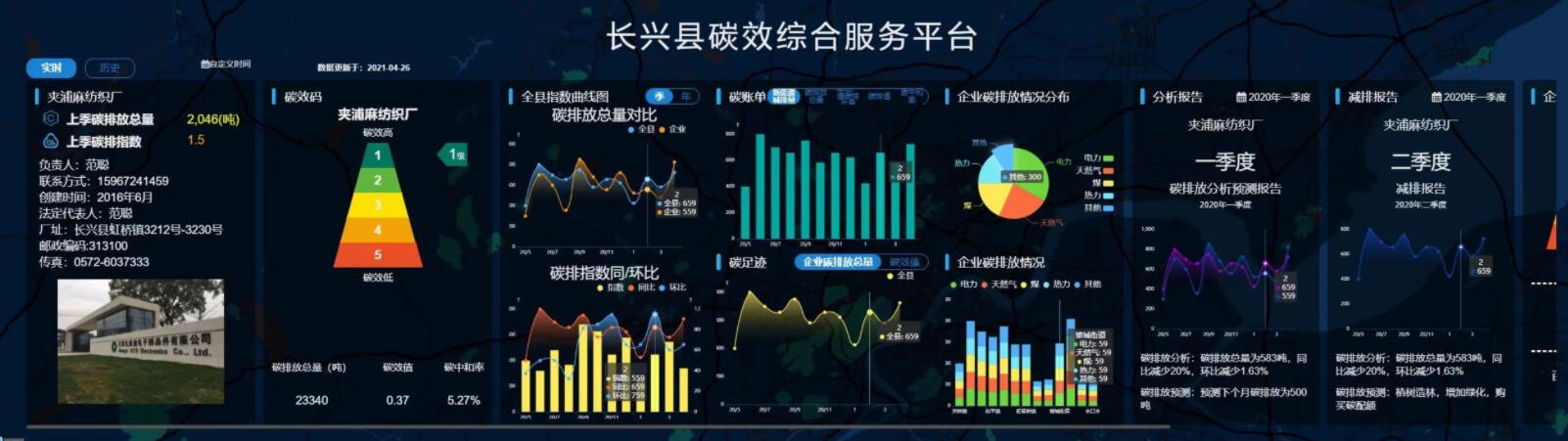 2021年2月,長(zhǎng)興首創(chuàng)推出“能源碳效碼”,依托電力大數(shù)據(jù)平臺(tái),集成區(qū)域、企業(yè)生產(chǎn)經(jīng)營的用電、用氣、用煤、用油等能耗數(shù)據(jù),轉(zhuǎn)換成碳排放量,結(jié)合區(qū)域、企業(yè)產(chǎn)值,進(jìn)行精準(zhǔn)統(tǒng)計(jì)、分析和賦碼,讓企業(yè)碳排放水平一“碼”了然。