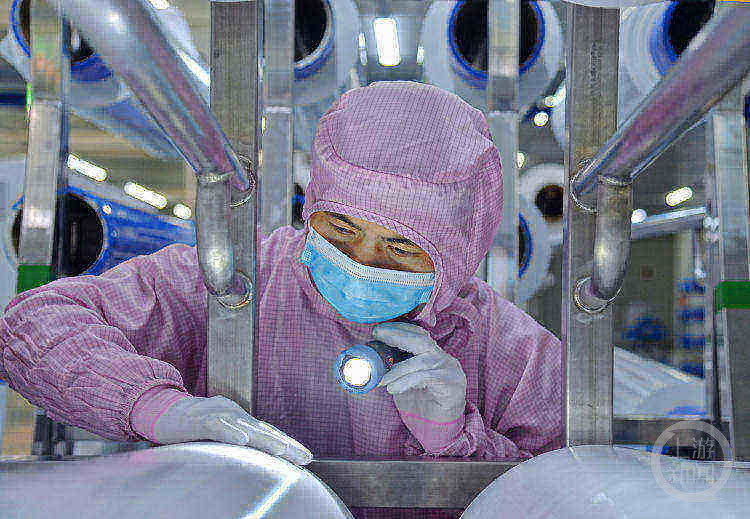 技術(shù)工人在對(duì)鋰電池隔膜進(jìn)行檢測(cè)。圖片來源/星源材質(zhì)