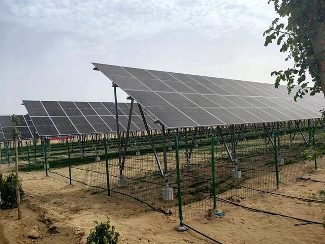 該項目在引用已經(jīng)示范驗收的沙漠土壤化改造、旱生作物種植及改良、高效節(jié)水等現(xiàn)代農(nóng)業(yè)技術(shù)的基礎(chǔ)上,首次嘗試農(nóng)光互補的模式。