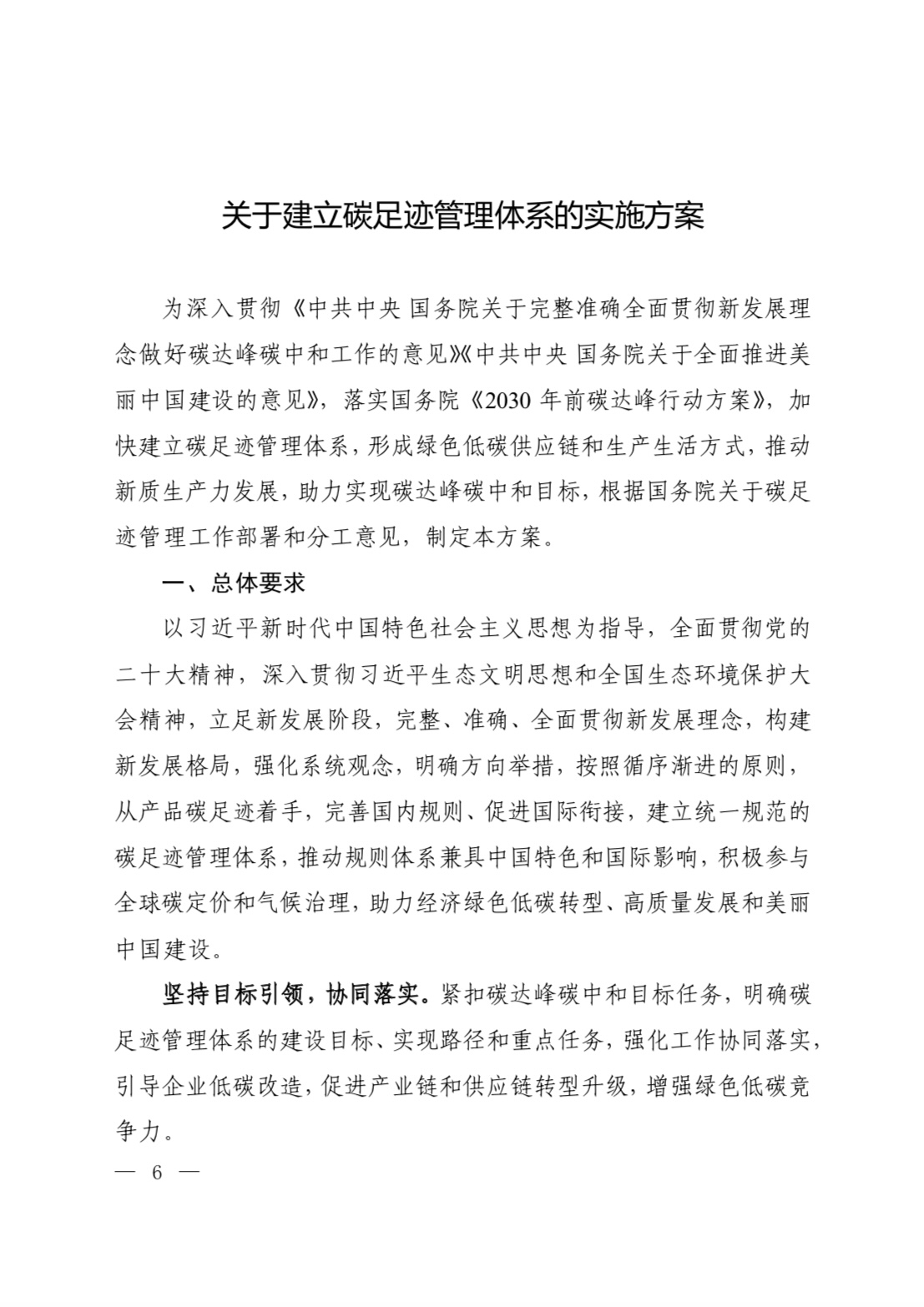 關(guān)于印發(fā)《關(guān)于建立碳足跡管理體系的實(shí)施方案》的通知