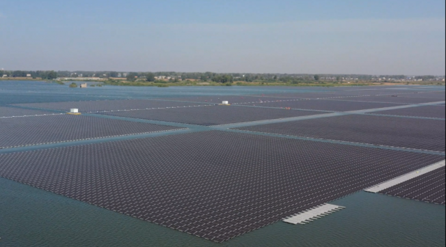 本次實現(xiàn)并網(wǎng)的是阜陽基地項目一期古城25萬千瓦漂浮式光伏電站。據(jù)介紹,阜陽基地項目所包含的光伏電站規(guī)劃用地全部為采煤沉陷區(qū)閑置水面,以“以光養(yǎng)水,凈水養(yǎng)綠,水光互補(bǔ)”為原則,通過合理布局抑制藻類過快繁殖,在常規(guī)發(fā)電收益基礎(chǔ)上結(jié)合“漁光互補(bǔ)”模式發(fā)展?jié)O業(yè)養(yǎng)殖,實現(xiàn)水體環(huán)境改造,構(gòu)建具有自我調(diào)節(jié)能力的淺水湖泊水生態(tài)系統(tǒng)。