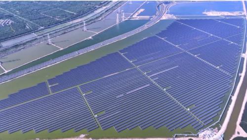 該項(xiàng)目位于天津市濱海新區(qū)長蘆海晶集團(tuán)鹽場內(nèi),采用鹽光漁互補(bǔ)模式,將傳統(tǒng)養(yǎng)殖、制鹽和新能源跨界融合,實(shí)現(xiàn)“水上光伏發(fā)電、水下養(yǎng)蝦、海水曬鹽”。