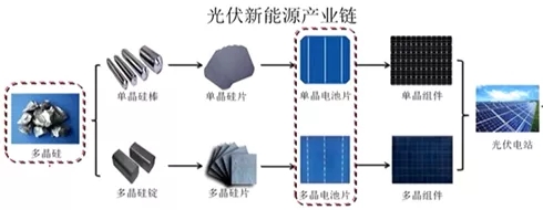 光伏產(chǎn)業(yè)鏈相對簡單,產(chǎn)業(yè)鏈上游主要是將半導(dǎo)體材料硅提煉成晶硅,中游廠商再將晶硅制作成電池片并生產(chǎn)相關(guān)的光伏組件,下游廠商則將電池片組裝成完整的發(fā)電系統(tǒng)并進(jìn)行維護(hù)和管理。