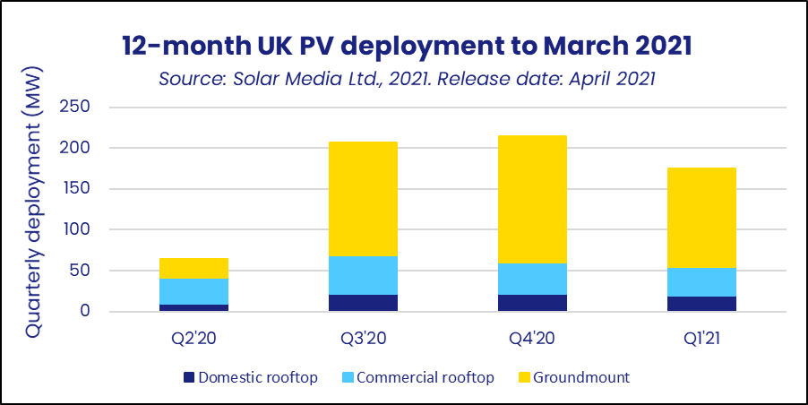 “此外,每個細分市場中的管道持續(xù)強勁增長,特別是對于大型太陽能發(fā)電廠。2021年仍將是英國太陽能行業(yè)發(fā)展重要的一年”,Solar Media的研究主管Finlay Colville說。
