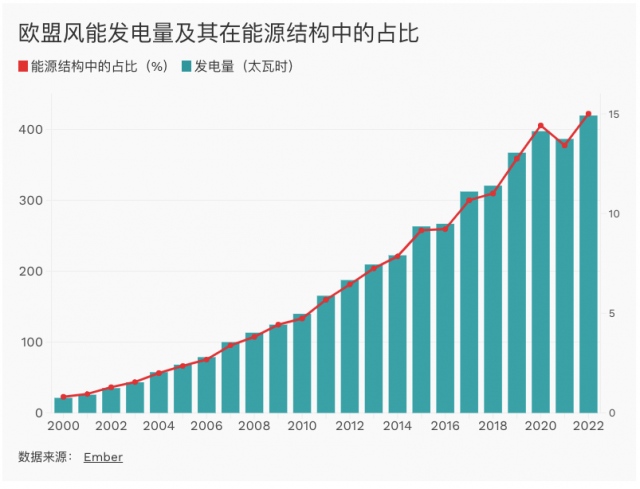 風(fēng)能產(chǎn)業(yè)呈現(xiàn)出不同的景象:根據(jù)歐盟委員會(huì)的數(shù)據(jù),目前歐盟產(chǎn)能可以滿(mǎn)足歐盟85%的風(fēng)能需求。