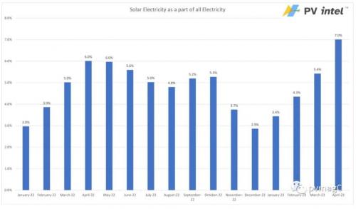 美國(guó)今年4月太陽(yáng)能發(fā)電量占全國(guó)總發(fā)電量的7%